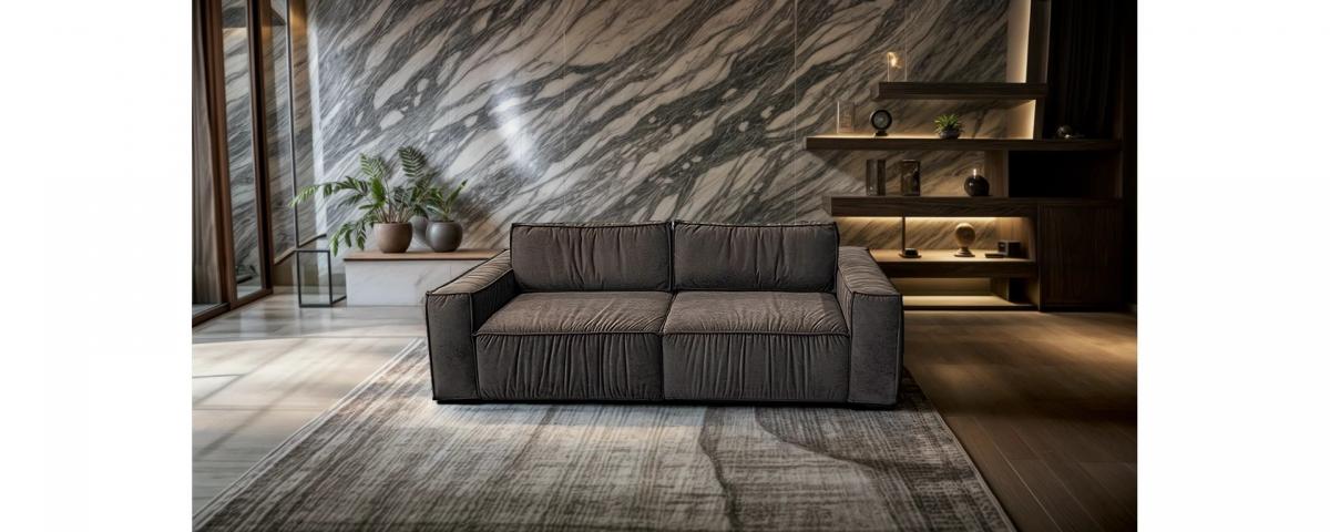 Диван ідеально вписується в сучасні інтер’єри: від лофту до мінімалізму. Завдяки нейтральному кольору та благородній фактурі тканини легко комбінується з іншими меблями та акцентами.