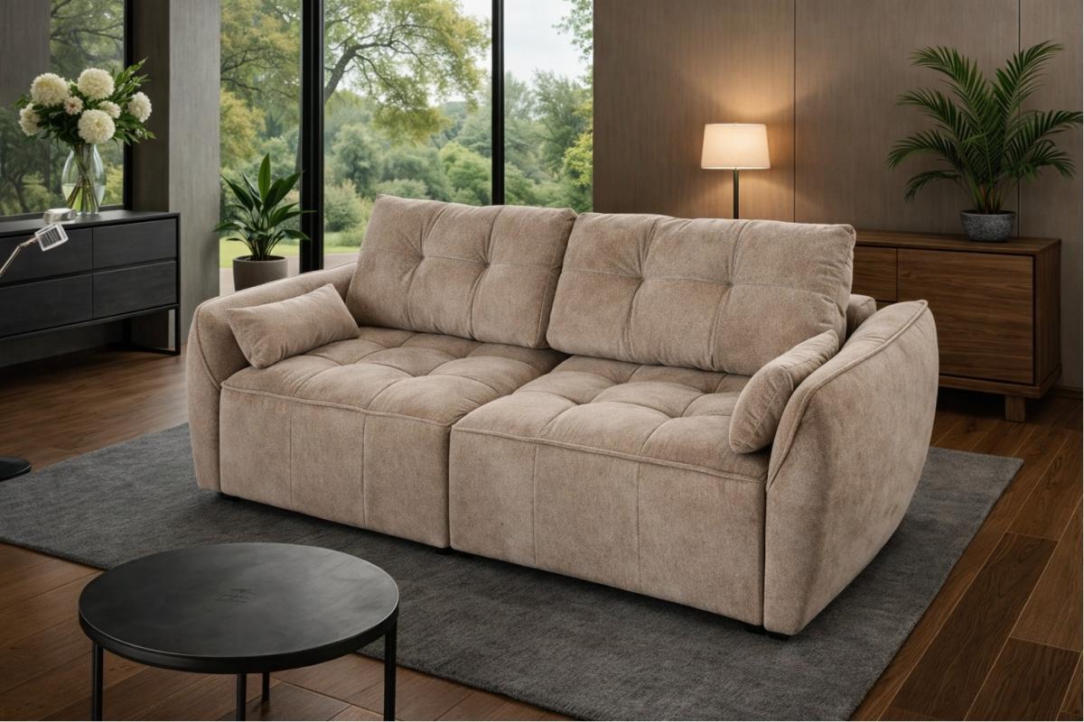 Диван також має високоякісний пінополіуретан підвищеної еластичності та щільності, що забезпечує зручну та м'яку підтримку тіла під час відпочинку. Аеропух, у свою чергу, збільшує міцність та стійкість дивана до деформації. У поєднанні з пружиною "змійка", диван забезпечує максимальний комфорт та підтримку.